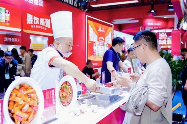 展會(huì)現(xiàn)場(chǎng),辣妹子展位人氣火爆,前來試吃、洽談的客商與觀眾絡(luò)繹不絕。展臺(tái)上,使用新品精心烹制的各式菜肴香氣四溢,色香味俱全,充分展示了辣妹子產(chǎn)品在餐飲應(yīng)用中的無限可能。